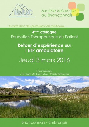 Le 4ème colloque de l'UBRAC, sur le thème Retour d'expérience sur l'ETP ambulatoire, aura lieu jeudi 3 mars 2016 sur le site de Chantoiseau.
